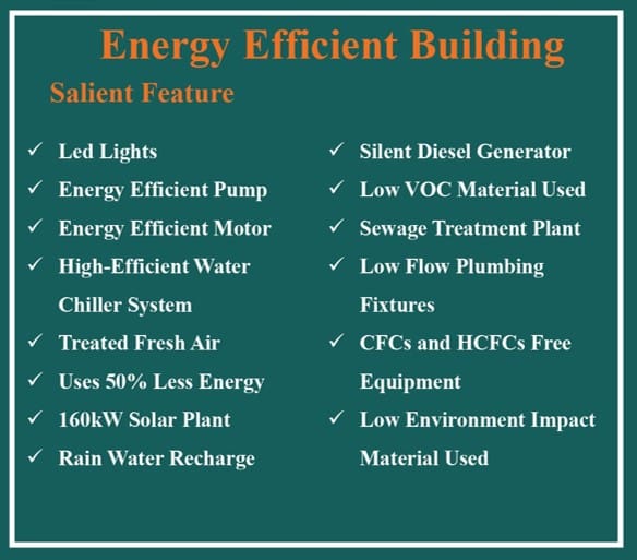 The commitment to sustainability is evident in every aspect of this project. Through meticulous planning and implementation, we’ve achieved an impressive 50% energy savings in heating, ventilation, and air conditioning (HVAC) systems, as well as lighting, compared to conventional buildings as per GRIHA.