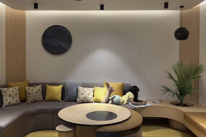 The ground + 3 floors structure features distinct color palettes for each level, each with its own unique selling points, while integrating the comfort of study spaces, luggage racks, sitting areas, fire space, luxury jacuzzi, TVs, and modular furniture designs.