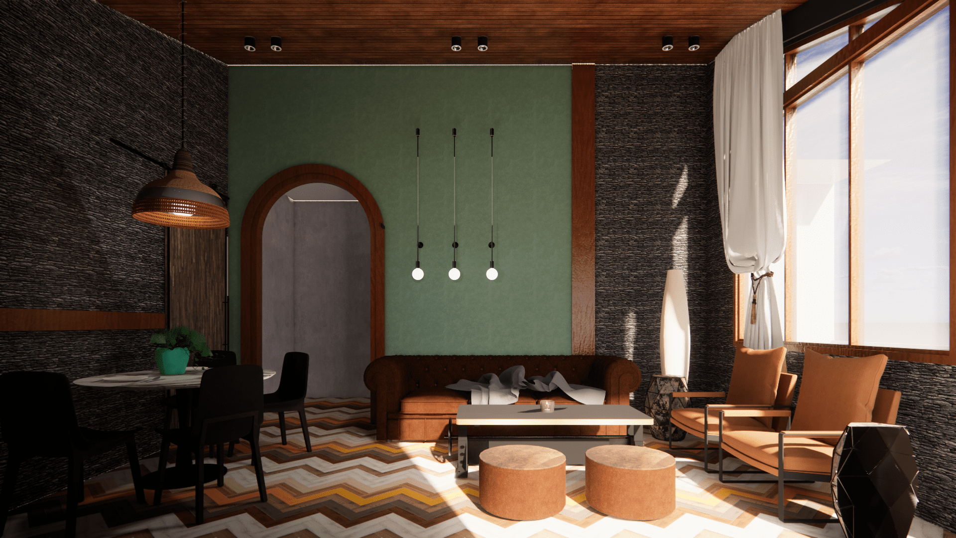 These design choices enhance the warmth and charm of the interiors, creating an inviting and aesthetically pleasing environment. Overall, it aspires to be a blend of comfort and cultural richness, inspired from a boho style that resonates particularly well with young guests.